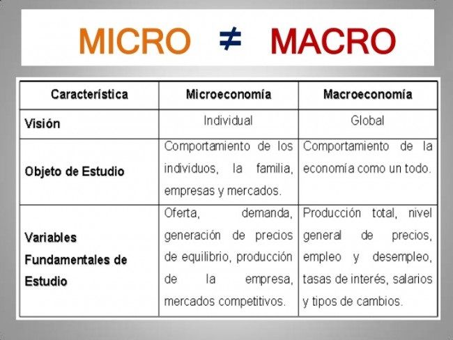 Por ejemplo la macroeconomía analiza como una suba de tipos de interés afecta el consumo, que relación hay entre inflación y paro , etc.